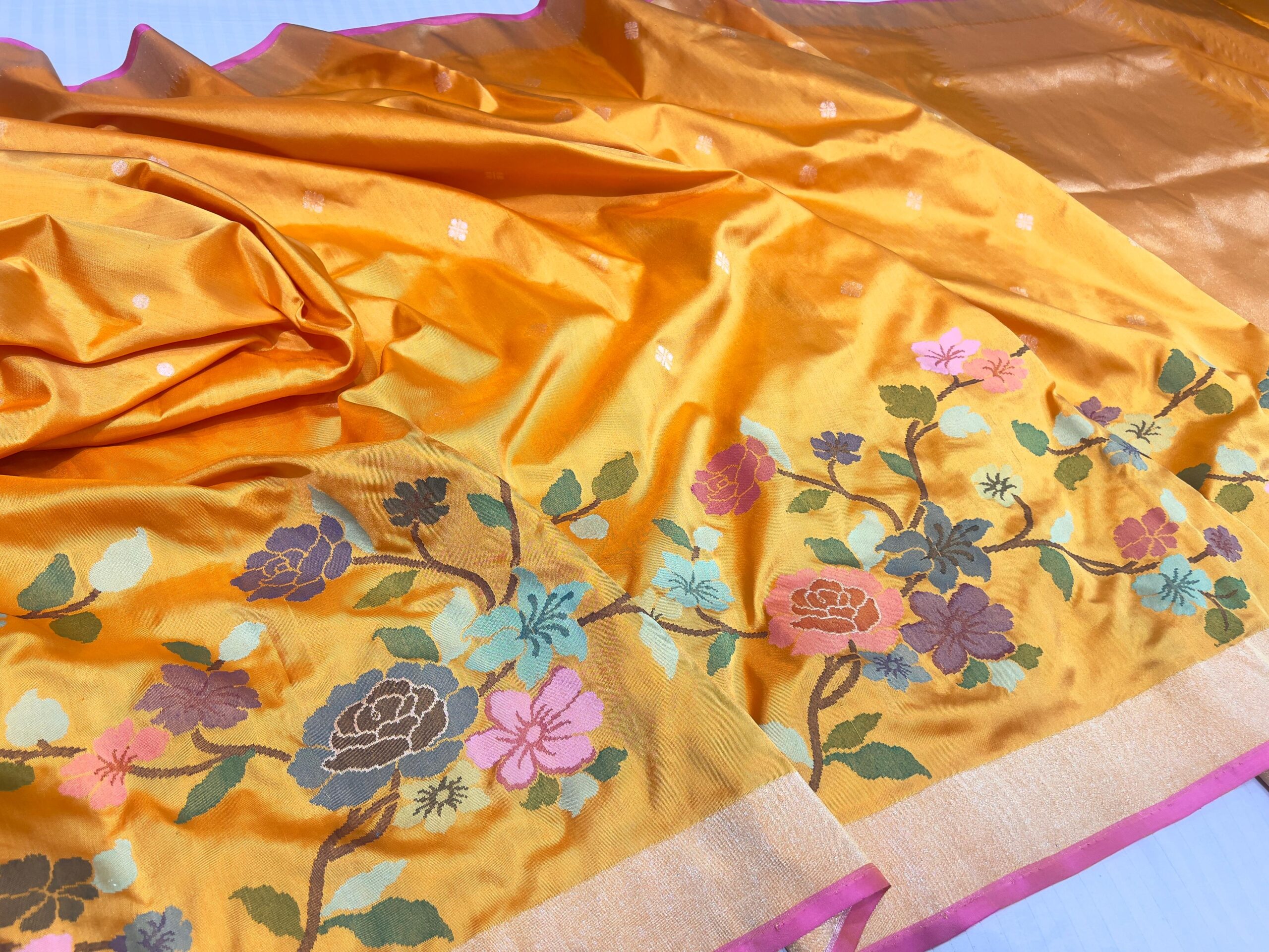 Presenting a luxurious Pure Silk Handloom Jamdani Skirt Buti Kadwa Saree, crafted by master Banarasi weavers with traditional techniques.