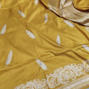 Presenting a beautifully crafted Pure Silk Katan Saree that blends traditional Banarasi weaving with modern designer elements.