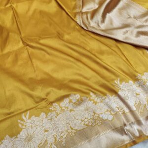 Pure Handloom Katan Silk Kadwa Booti Banarasi Saree Dark Yellow