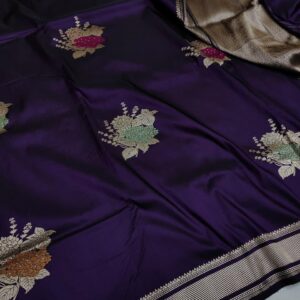Pure Handloom Katan Silk Kadwa Booti Banarasi Saree Dark Bagni