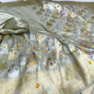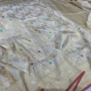 Pure Silk Tissue Allover Kadwa Meenakari Jungla Saree – Off White | Handloom Banarasi